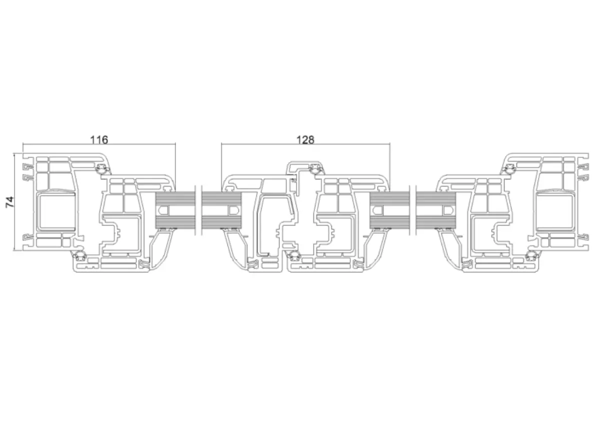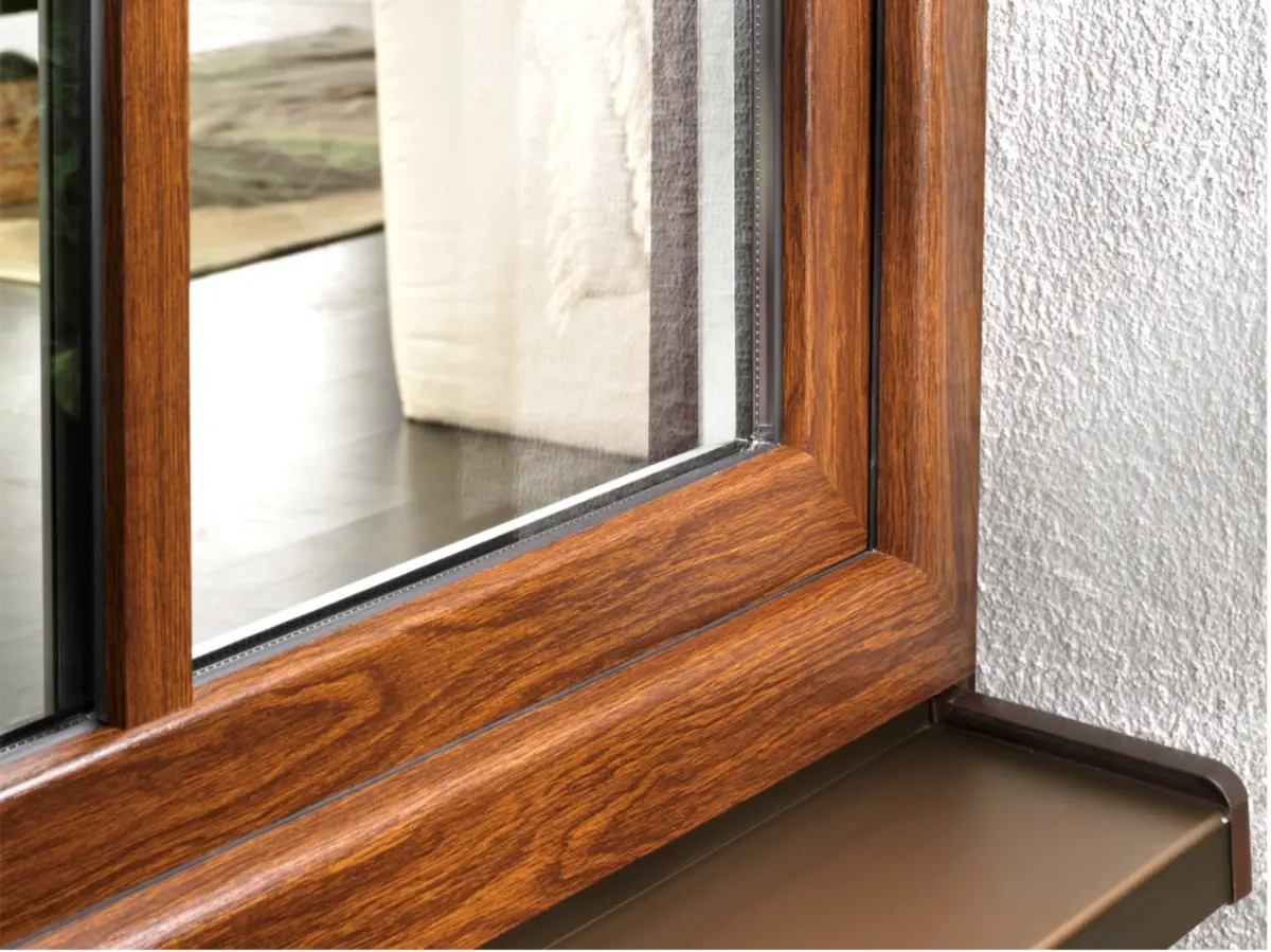 Sistema de batente em PVC da Gealan, com 74 mm de espessura do aro fixo, que permite um bom isolamento térmico e acústico.